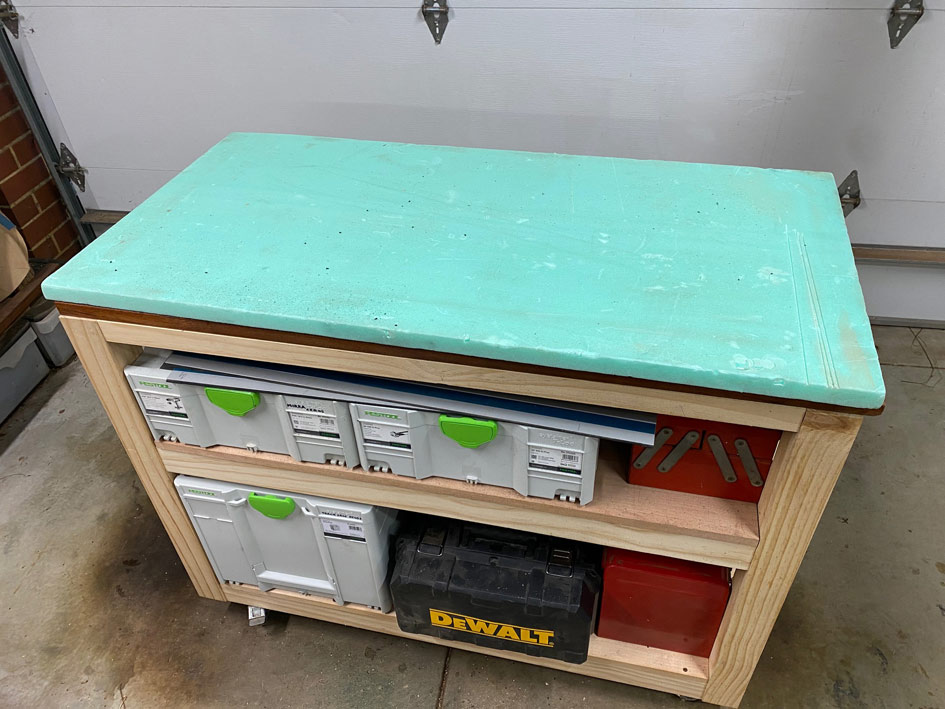 I decided to build a small bench, which could also house the systainers which have been slowly appearing. This is 1200mm long x 600mm wide. Also, while one of the systainers contains a Domino DF500, all joints here were full-on mortice and tenon. I believe they will resist movement better than a domino.