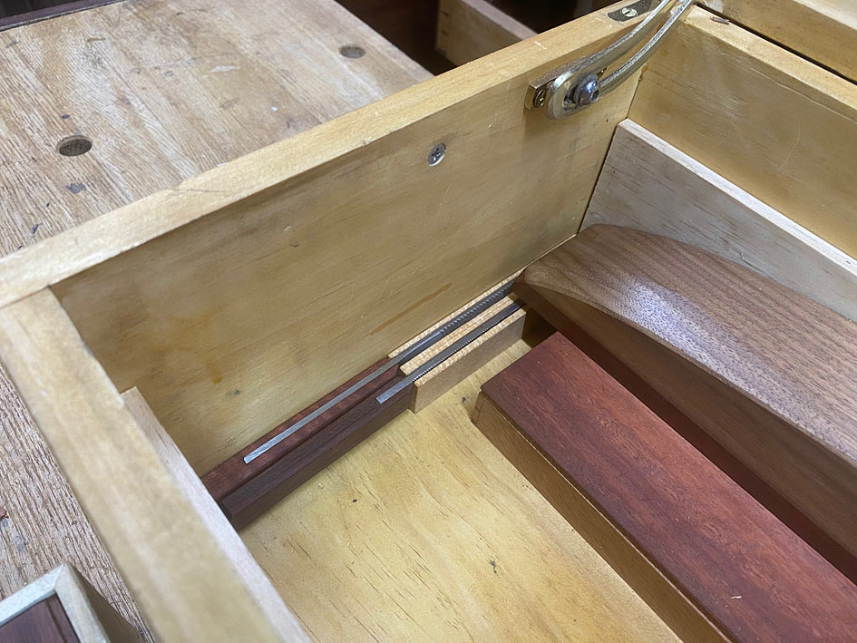 The obvious place for them in the tool box was along the left side below the lid stay. This was also the best place for a gennou.