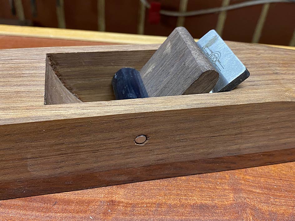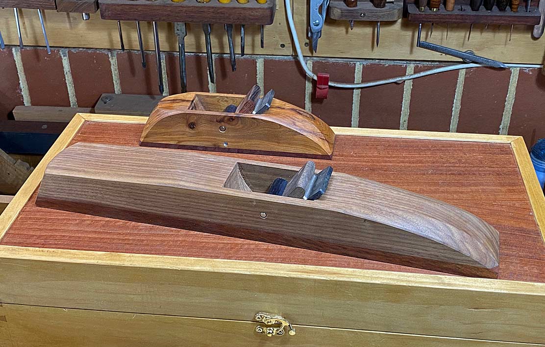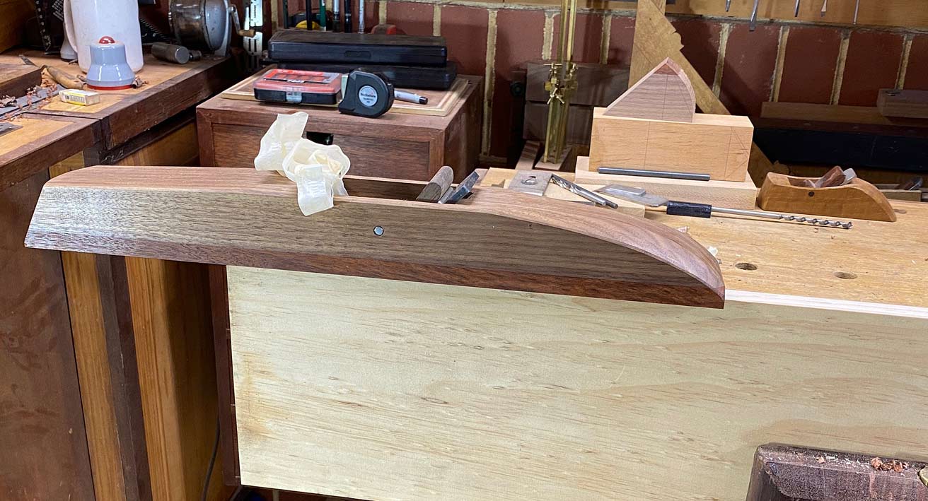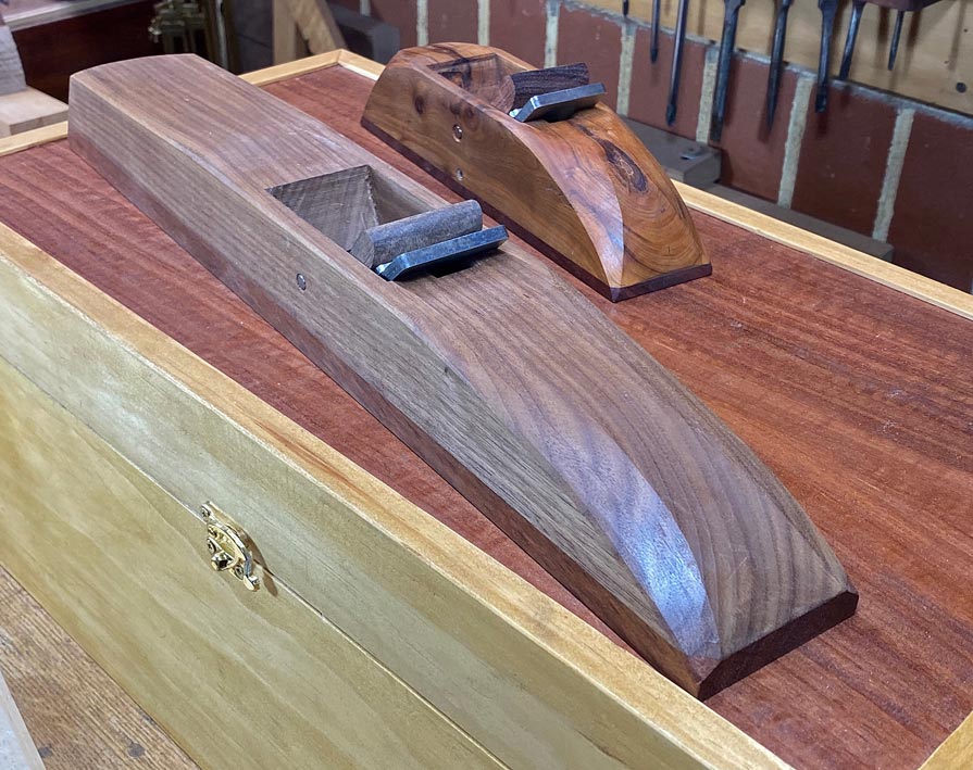The first requirement is light weight together with stiff and stable. The Black Walnut is a light wood - lighter than Tassie Oak - but it is a softer wood and not particularly durable. The Jarrah gives it the strength. If I used Jarrah alone, the plane would weigh four times as much.