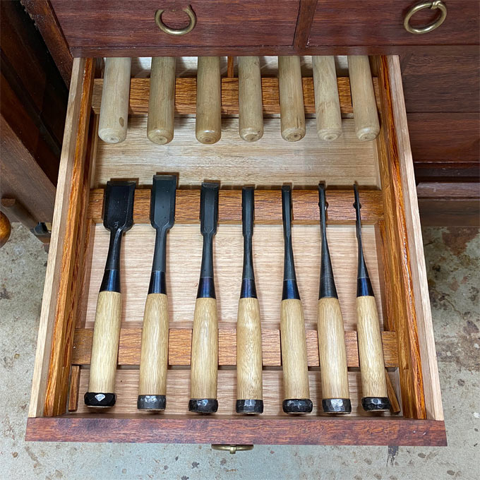 The design was intended to match the original dovetail marking knife I designed, and later was made by Chris Vesper. Some of you have this one.