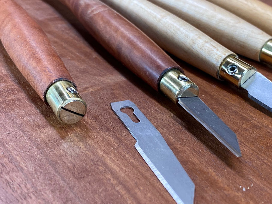 There are two Swann-Morton blades I use: the SM01 (with the horizontal edge), and the SM03 (with the angled edge) ...